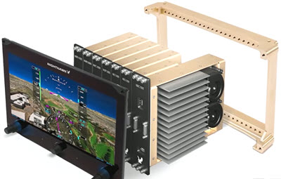 For example, in an installation in a Cessna 340, the traditional six pack instrumentation is removed and replaced with Guardian’s system, powered by NEST modular architecture and mission-computing unit. Behind the panel the NEST modules integrate cleanly into the aircraft through a blade link that integrates all functions upon installation.